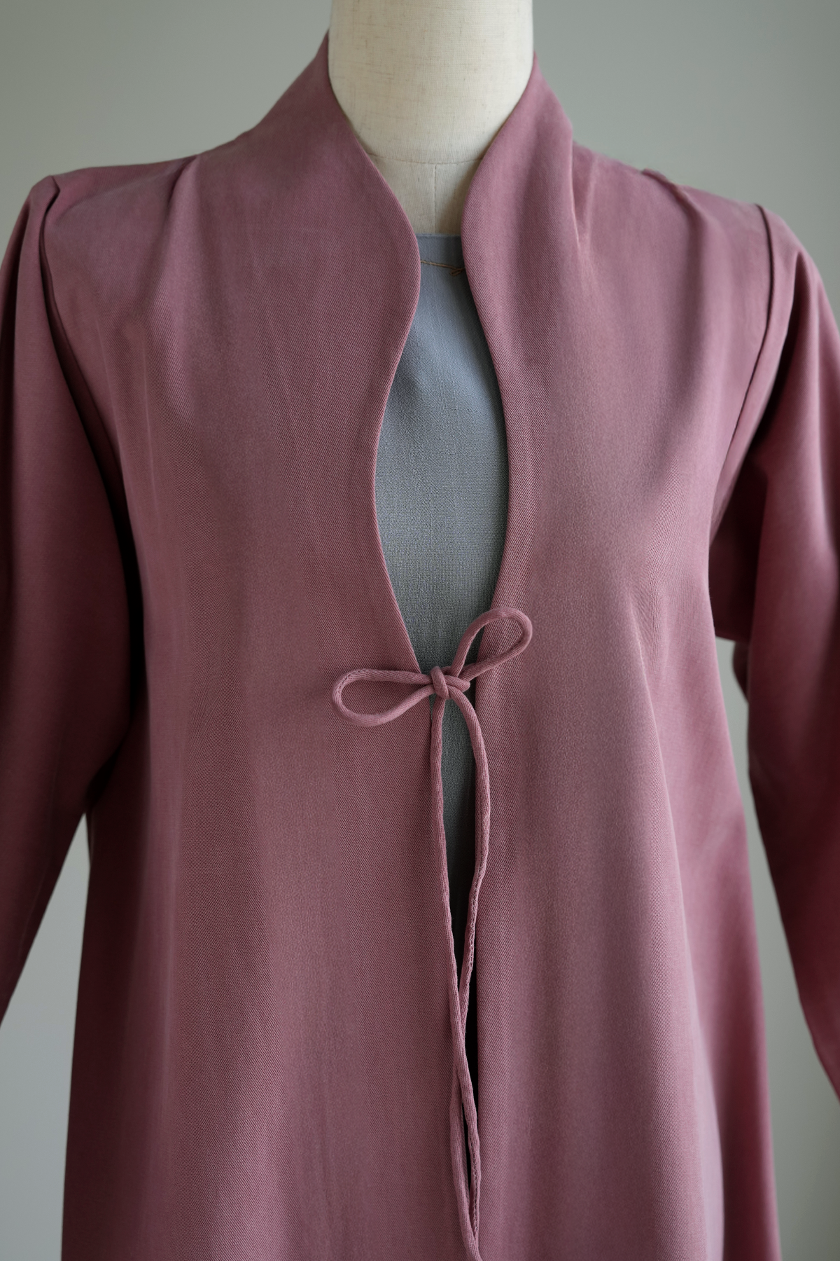 Stretch twill abaya with handmade sleeve buttons crafted from real flowers.
