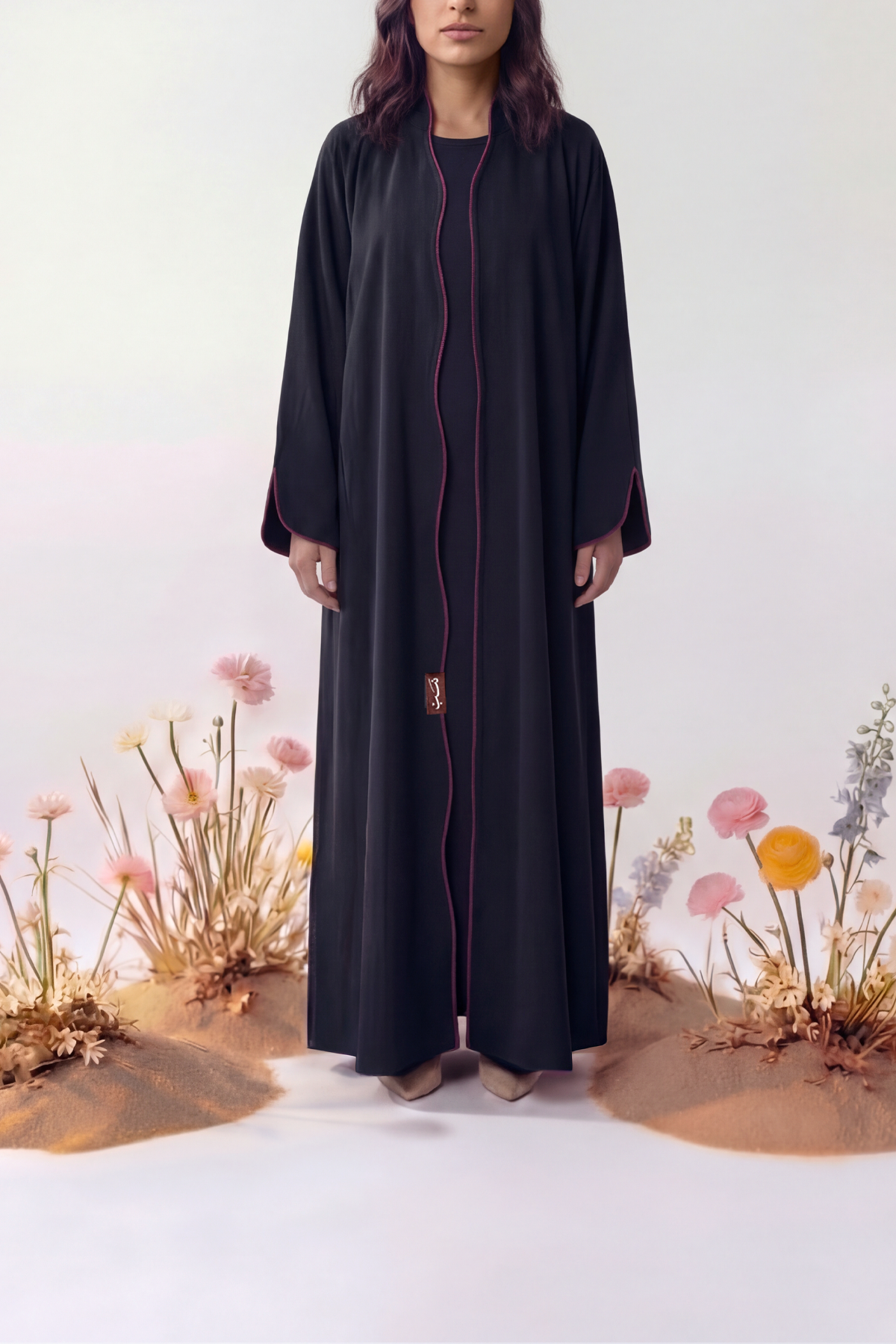 Indonesian crepe abaya with an asymmetric wavy-and-straight design.