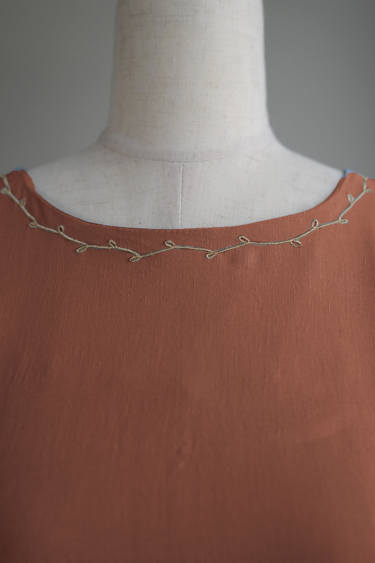Linen-blend inner dress with soft embroidery at the neckline.