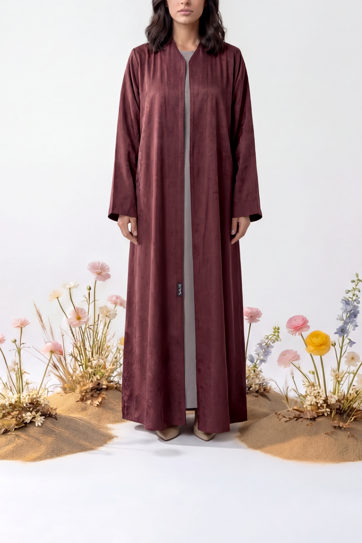 Luxury Cotton jacquard abaya featuring a delicate floral print