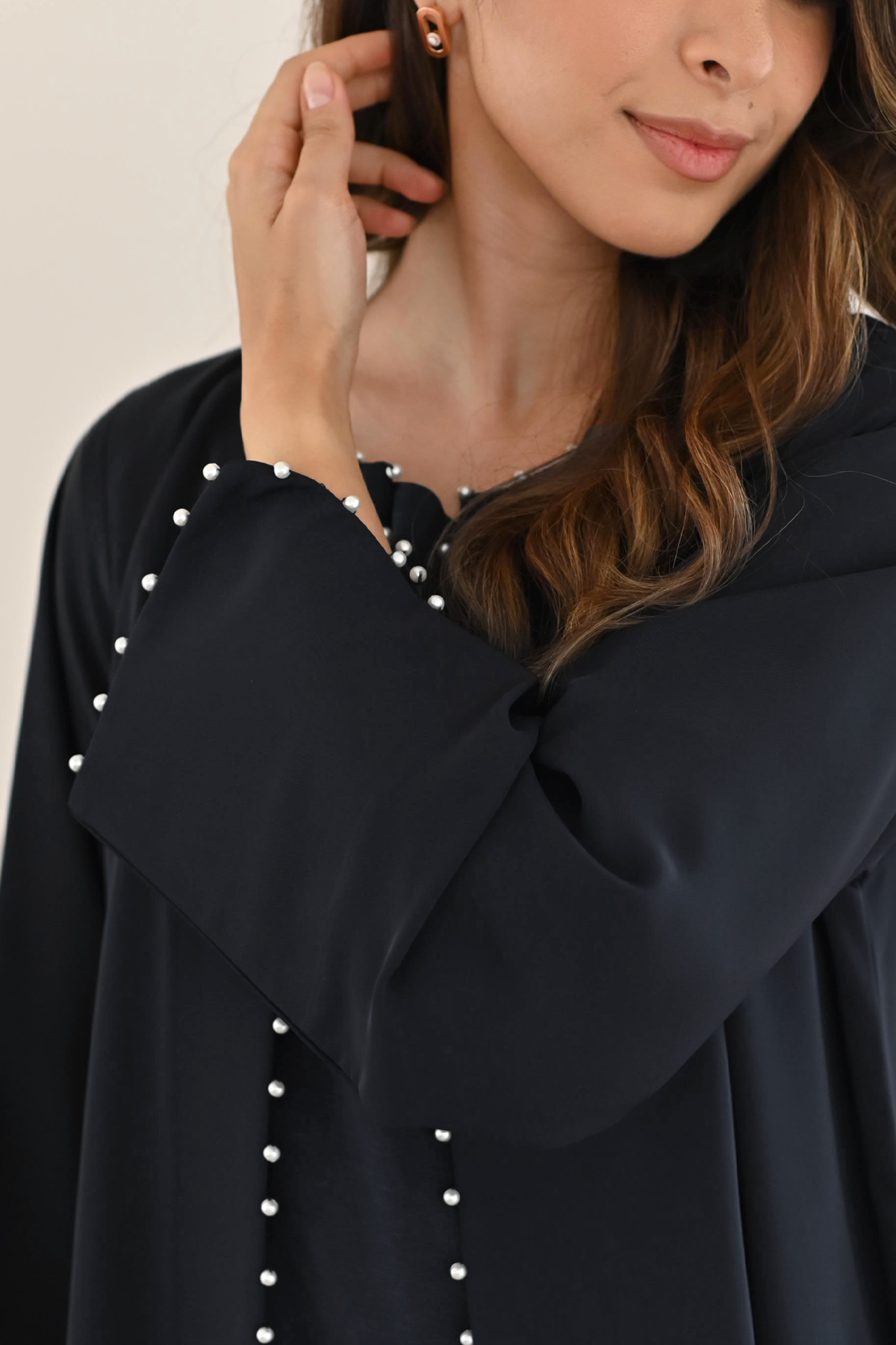 Crafted in black, NB13 offers a classic silhouette softened by delicate pearl details. Each pearl catches the light like a quiet reflection, adding grace to every movement. Understated, timeless, and gently luminous.