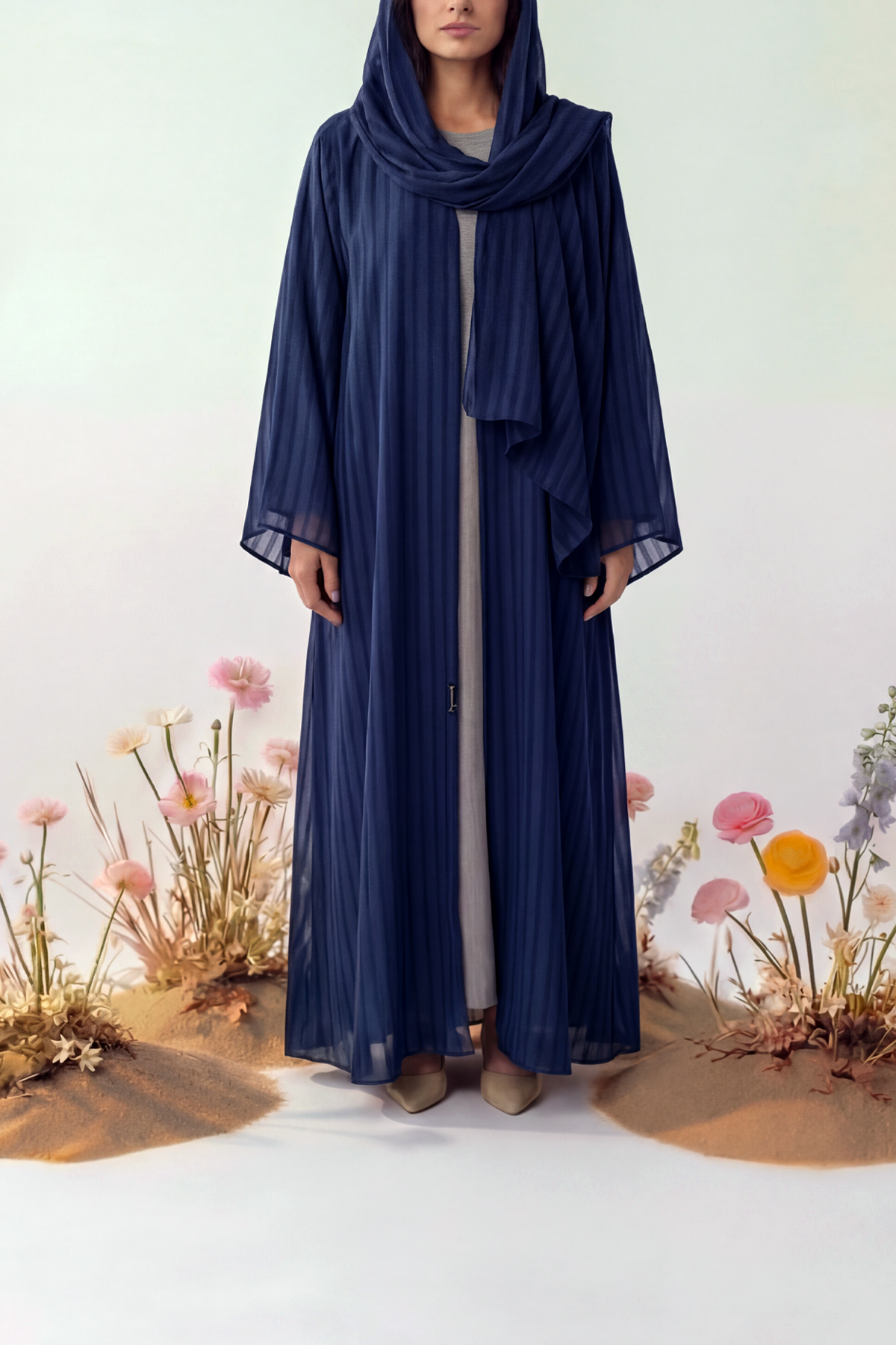 Korean chiffon abaya with mixed-density stripes for subtle texture.